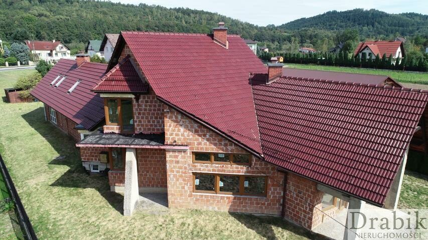 Do kupienia wyjątkowy budynek o oryginalnej bryle łączący funkcje mieszkalne z usługowymi lub stanowiący dom w którym można wydzielić 2 osobne mieszkania, położony na prawie 29ar działce 3km od Jeziora Mucharskiego.