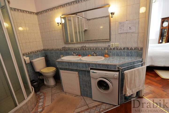- łazienki (8,46m2) z wanną z hydromasażem, kabiną prysznicową, dwiema umywalkami oraz WC,