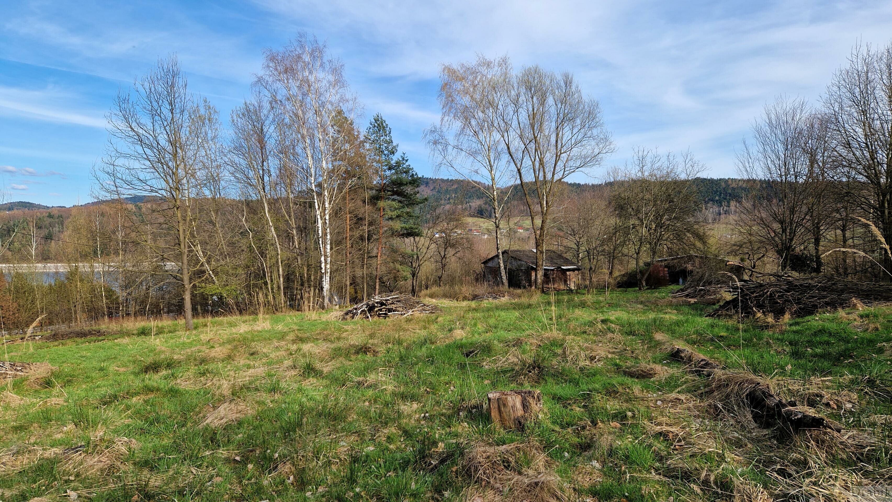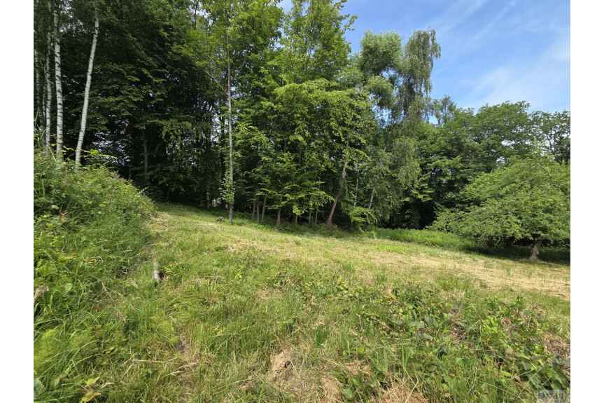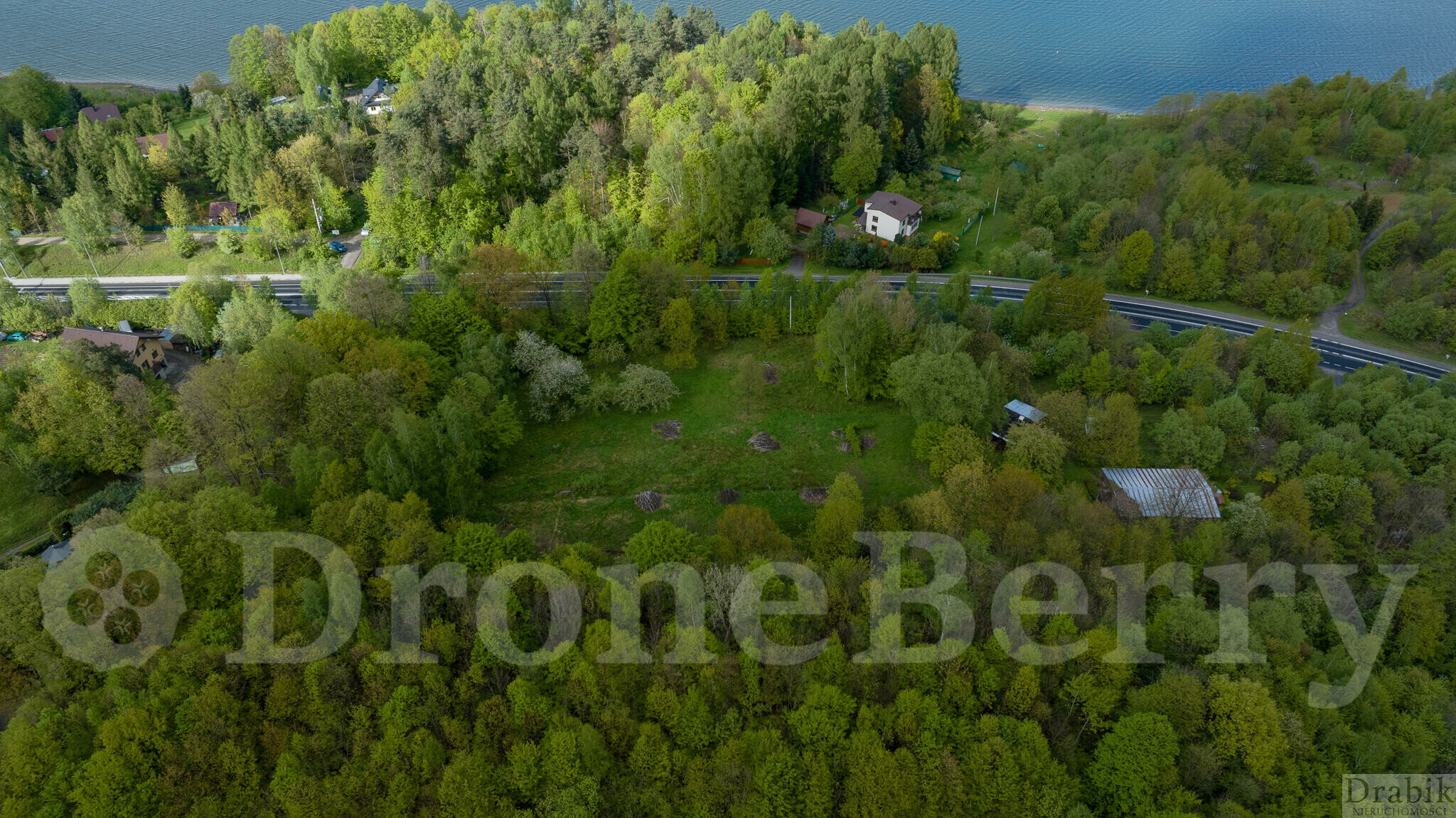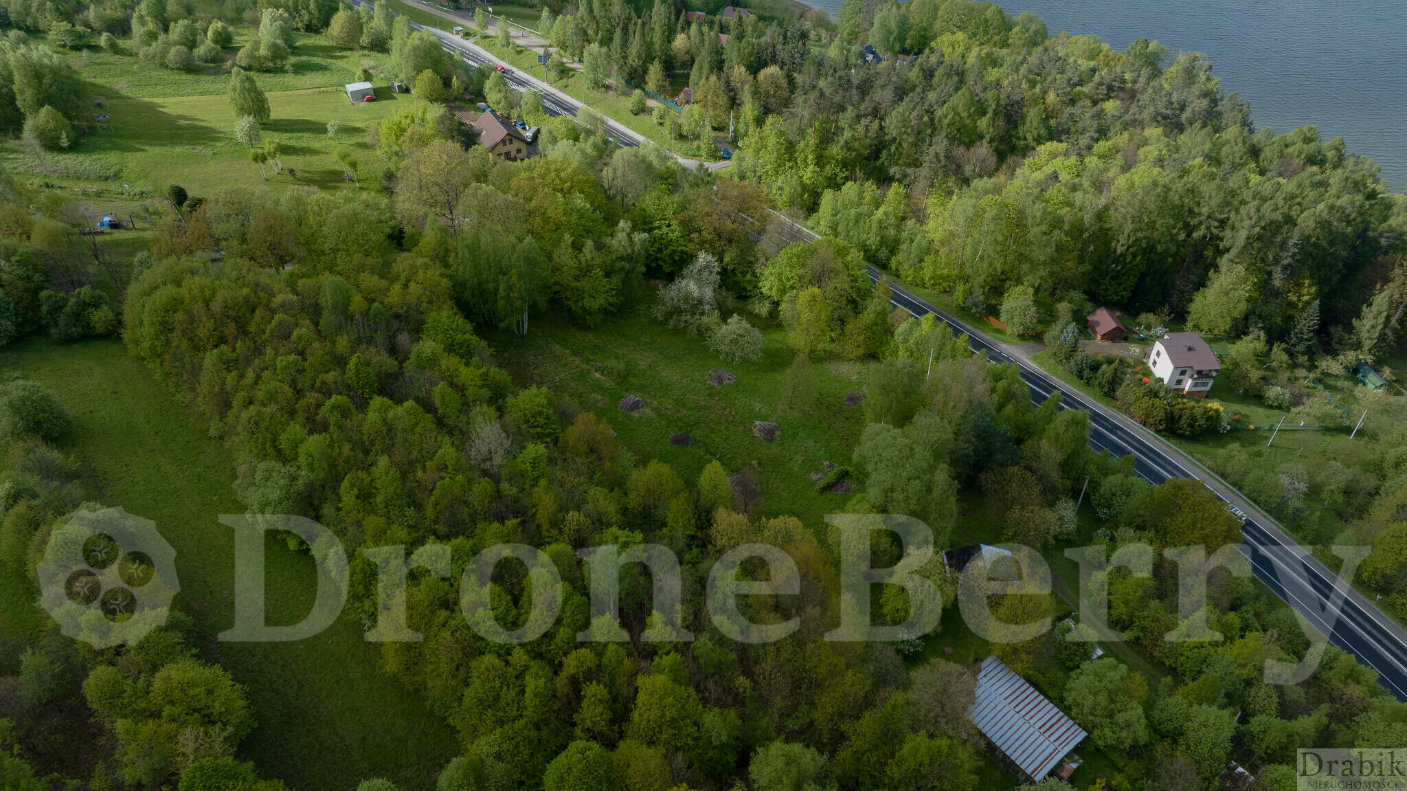 Działka ma powierzchnię 1720m2, jest otoczona drzewami, ale widać z niej również fragment taflli jeziora. Działka ma kształt nieregularny, szerokość i długość wynoszą po około 26m oraz 91m. Większość działki jest budowlana ( ok. 1120m2 - pod zabudowę jednorodzinną, wskaźnik zabudowy max 30%), resztę stanowią tereny zielone. Media: na działce znajduje się przyłącz prądu, woda - trzeba kopać studnię, nie ma kanalizacji. Dojazd początkowo drogą utwardzoną.
