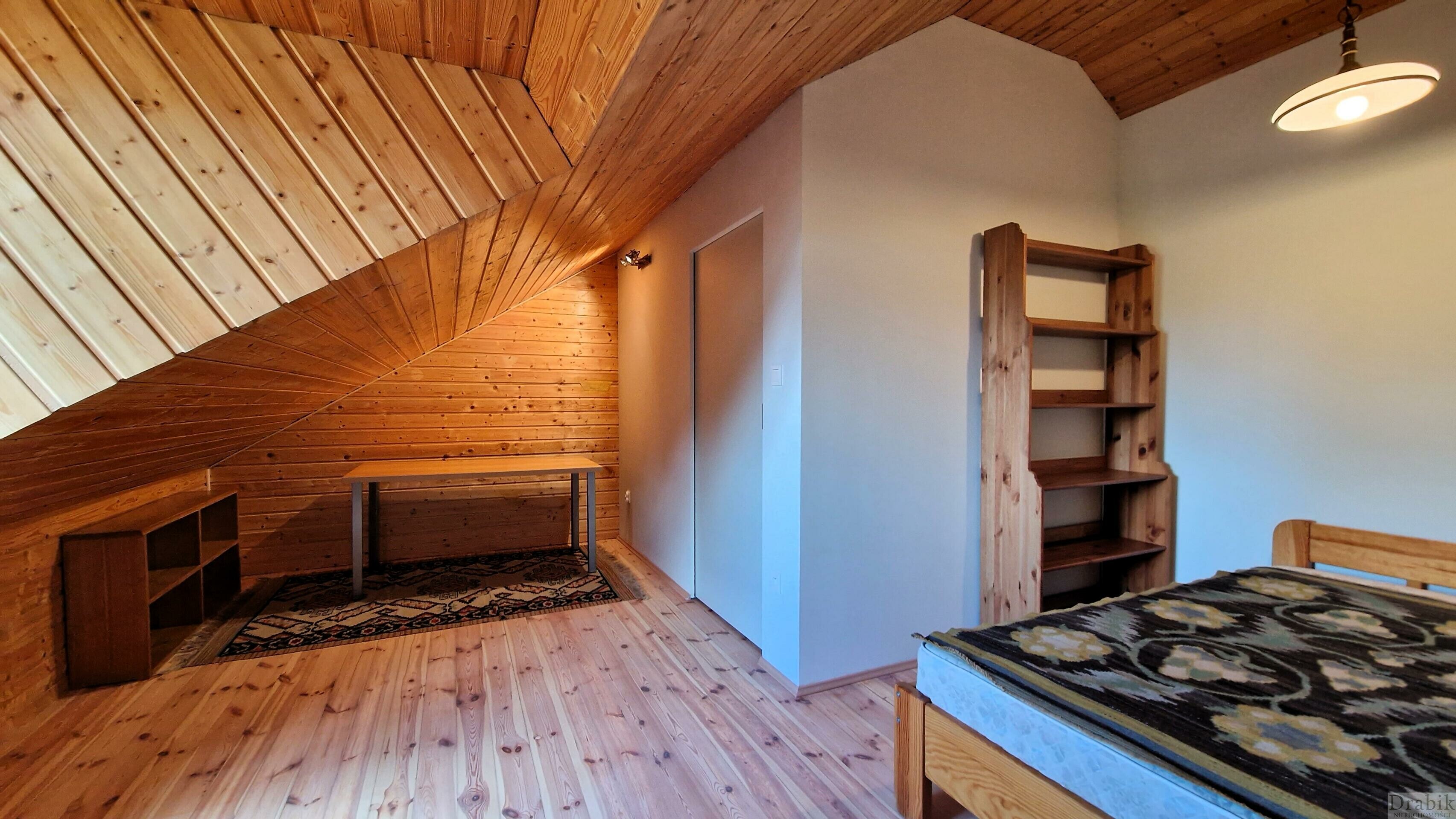 - poddasza o pow. 21m2 składającego się z sypialni (12,7m2) oraz otwartej przestrzeni z miejscem np. na biurko do pracy.