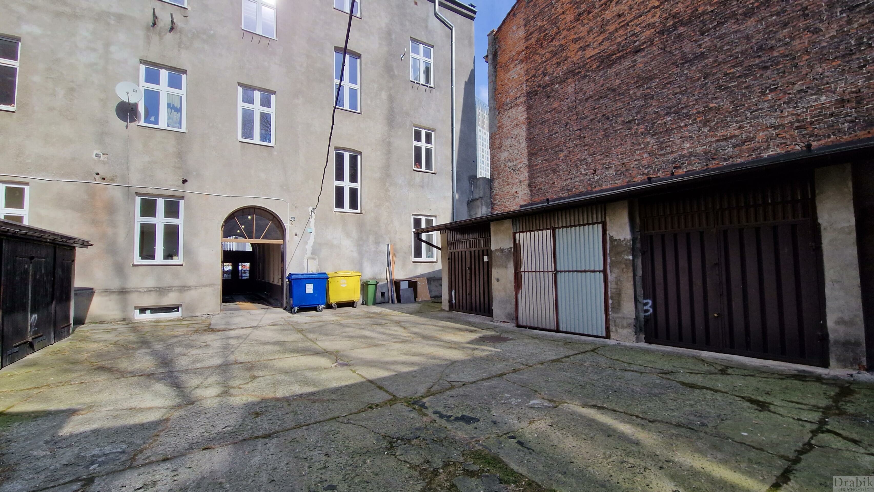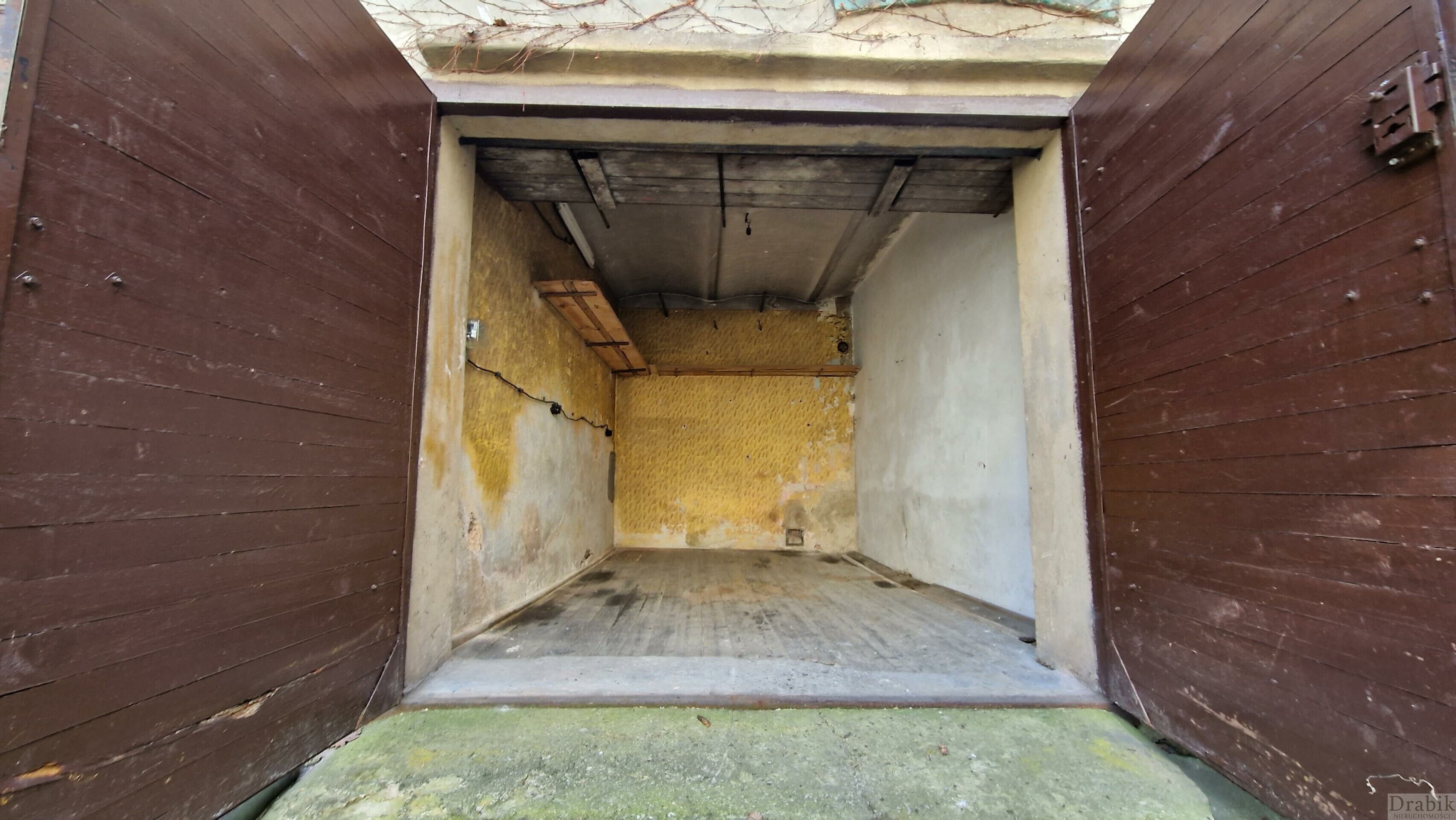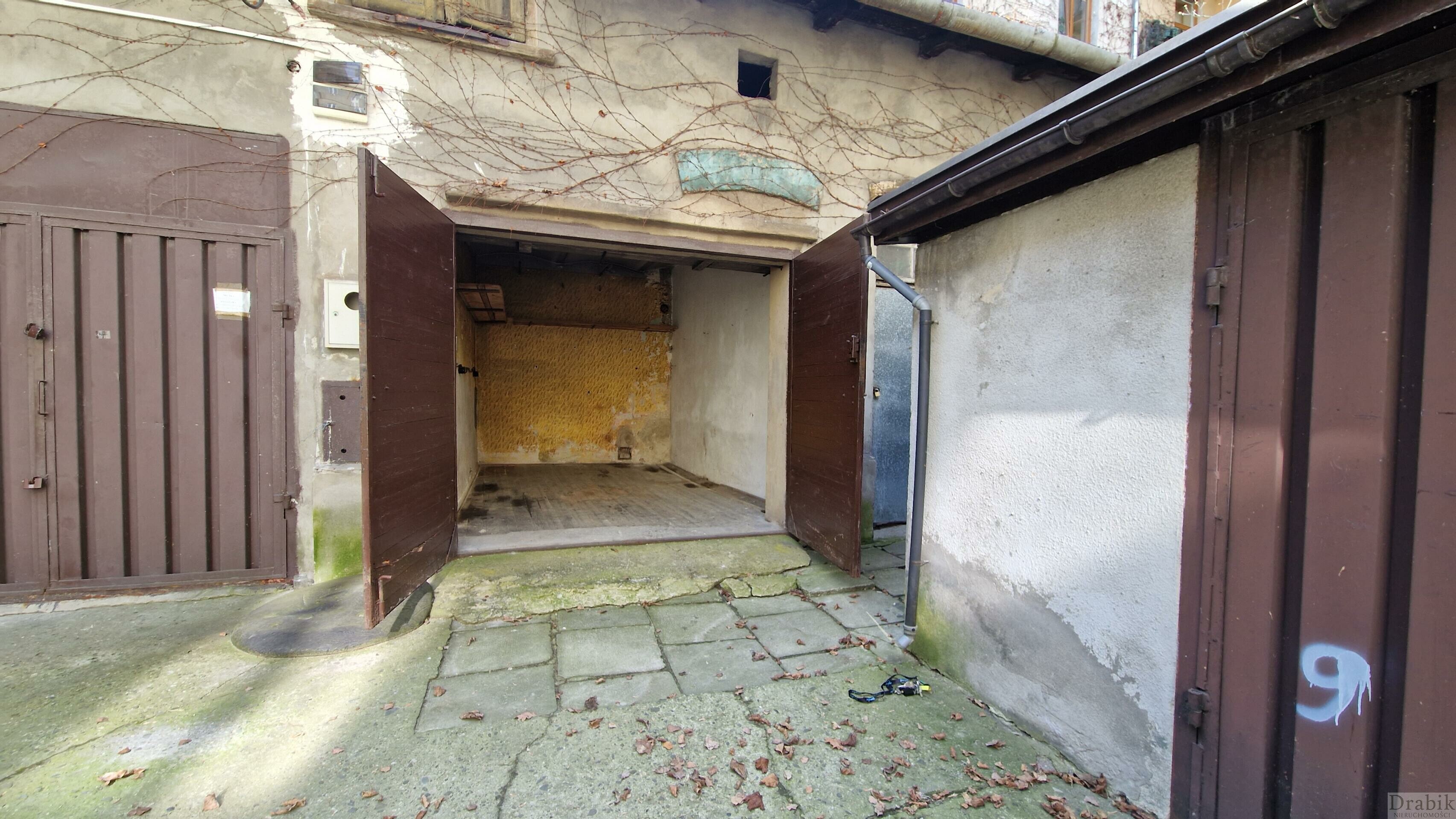 Garaż murowany, nieogrzewany z doprowadzonym prądem. Garaż pod funkcję przechowywania rzeczy lub jako garaż dla meleksów (ze względu na zbyt wąski przejazd przez kamienicę nie nadaje się do garażowania samochodu).