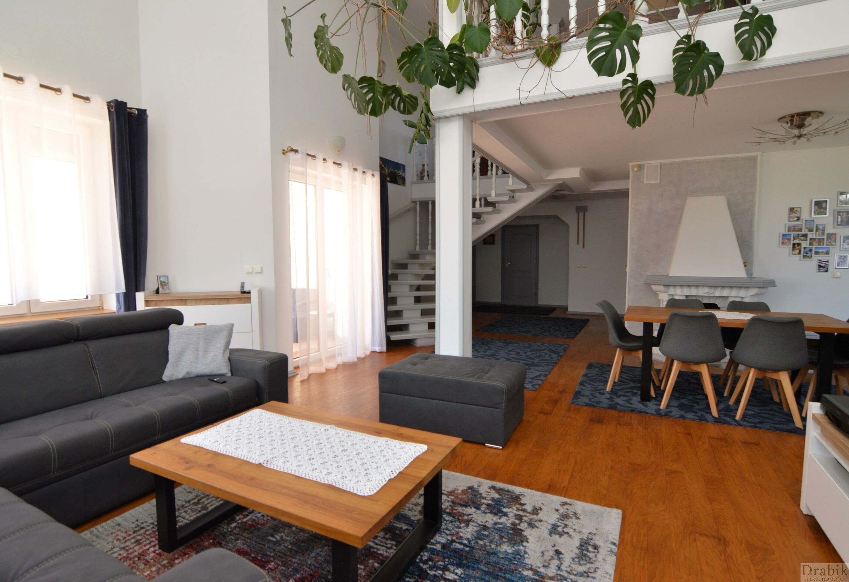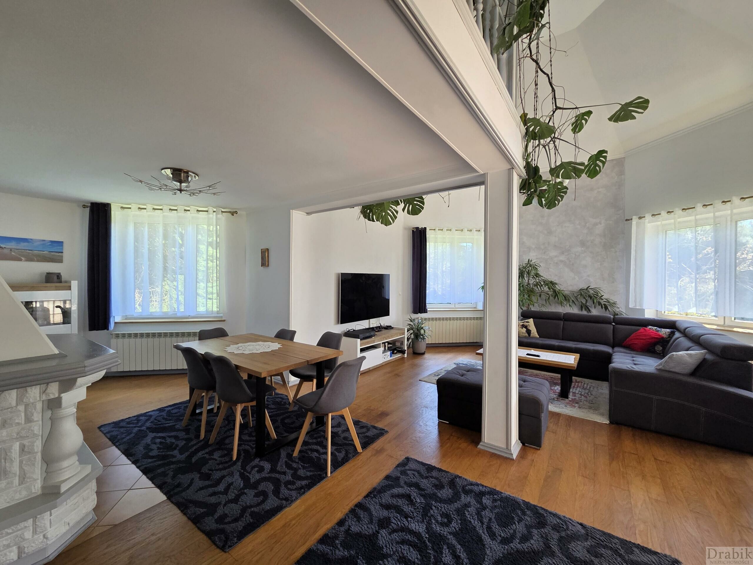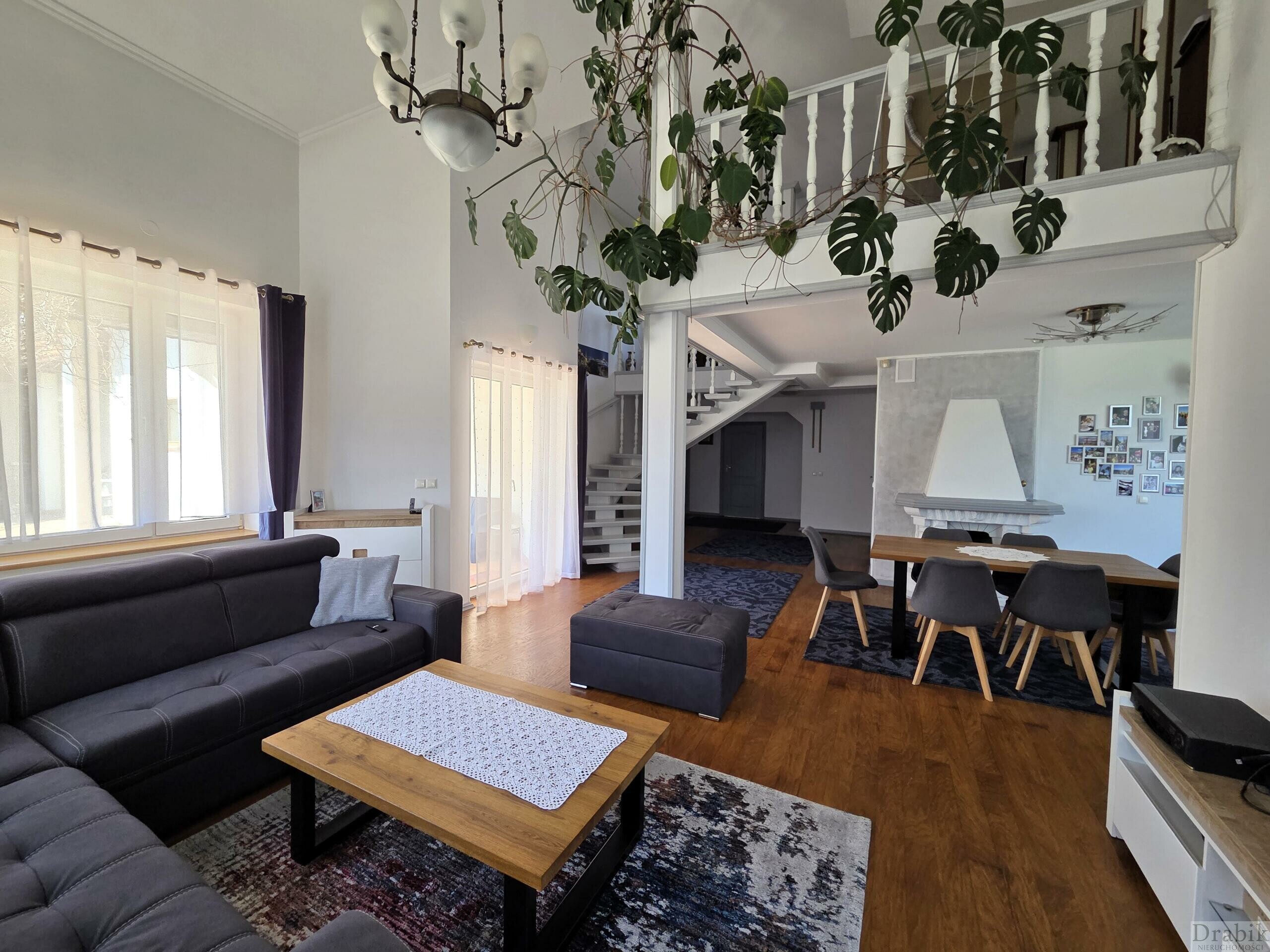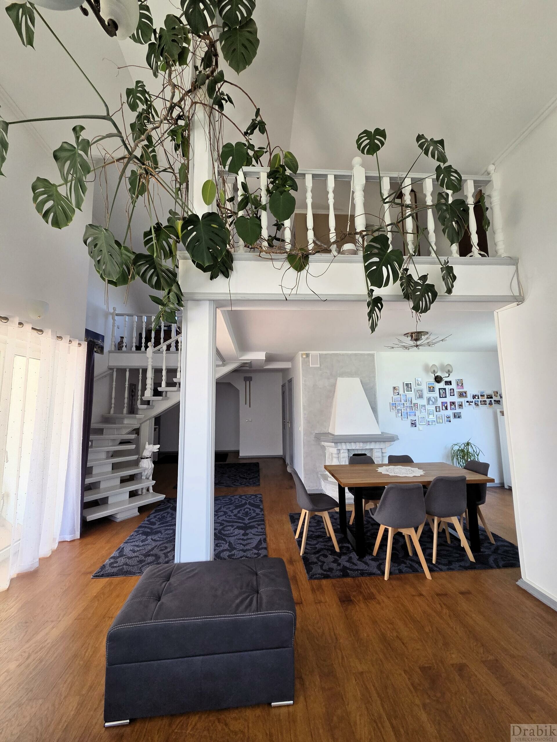 - parteru: wiatrołap, wc, przestronny salon (39m2) z kominkiem i z wyjściem na taras oraz ogród za domem, a także z wyjściem na antresolę (ok. 30m2 powierzchni liczonej po podłodze), którą można zaadoptować na dodatkowy pokój, hall otwarty na salon (14,4m2 - powierzchnia wliczając wiatrołap), 5 pokoi (pow. 13,6m2, 2 x 11.2m2, 16,8m2, 8m2) z czego jeden pokój jest z wyjściem na ogród, jeden pokój z wyjściem na loggię, kuchnia z jadalnią z widokiem na Jezioro Mucharskie, łazienka z wanną i prysznicem (10m2), wc, garderoba (7,8m2 - z oknem), dwa pomieszczenia gospodarcze (spiżarnia, suszarnia o łącznej pow. 6,1m2) oraz wyjście na strych