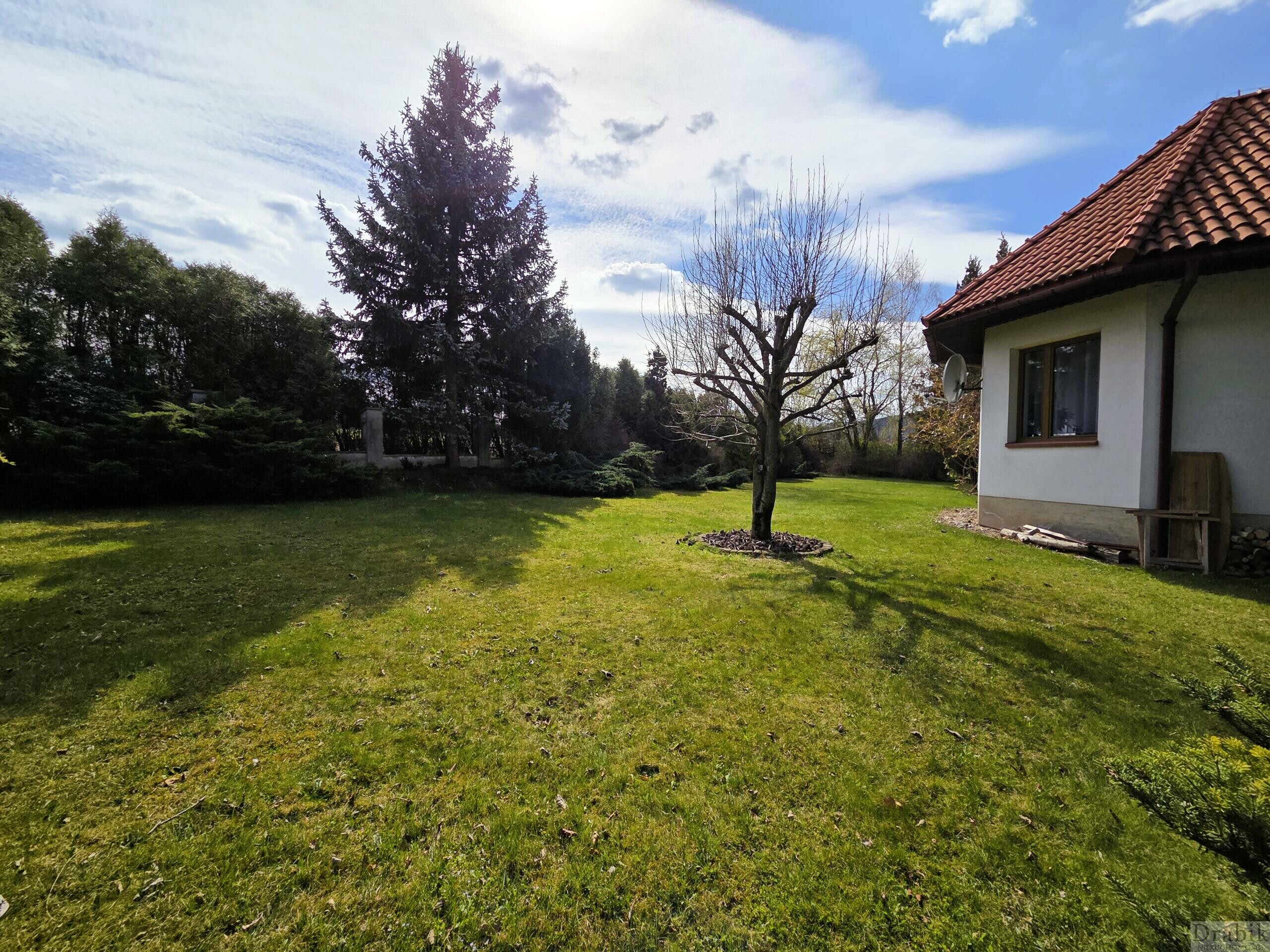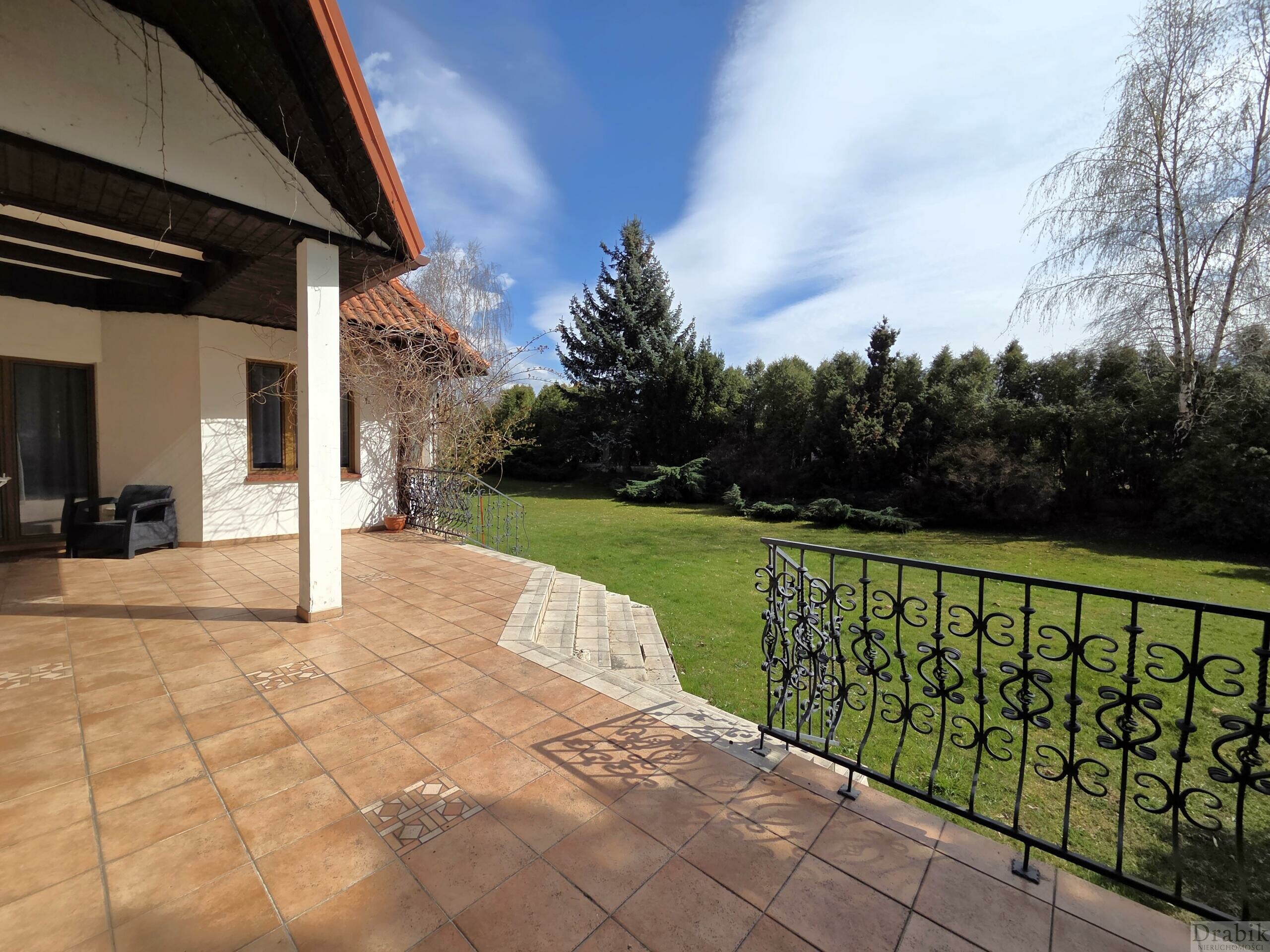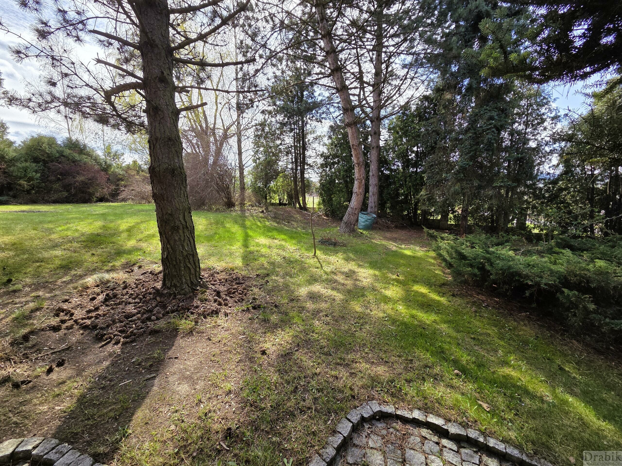 Dom otoczony jest okazałym ogrodem. Znajdują się tam wysokie ok. 30 letnie drzewa a także mnóstwo roślinności w niższych partiach, rozmaite krzewy oraz kwiaty, które tworzą zieloną enklawę zapewniającą domownikom ciszę, latem cień a na co dzień prywatność oraz swobodę. Za domem znajduje się przestronny, częściowo zadaszony taras z zejściem do ogrodu, idealny na grilla lub odpoczynek w letnie długie wieczory.