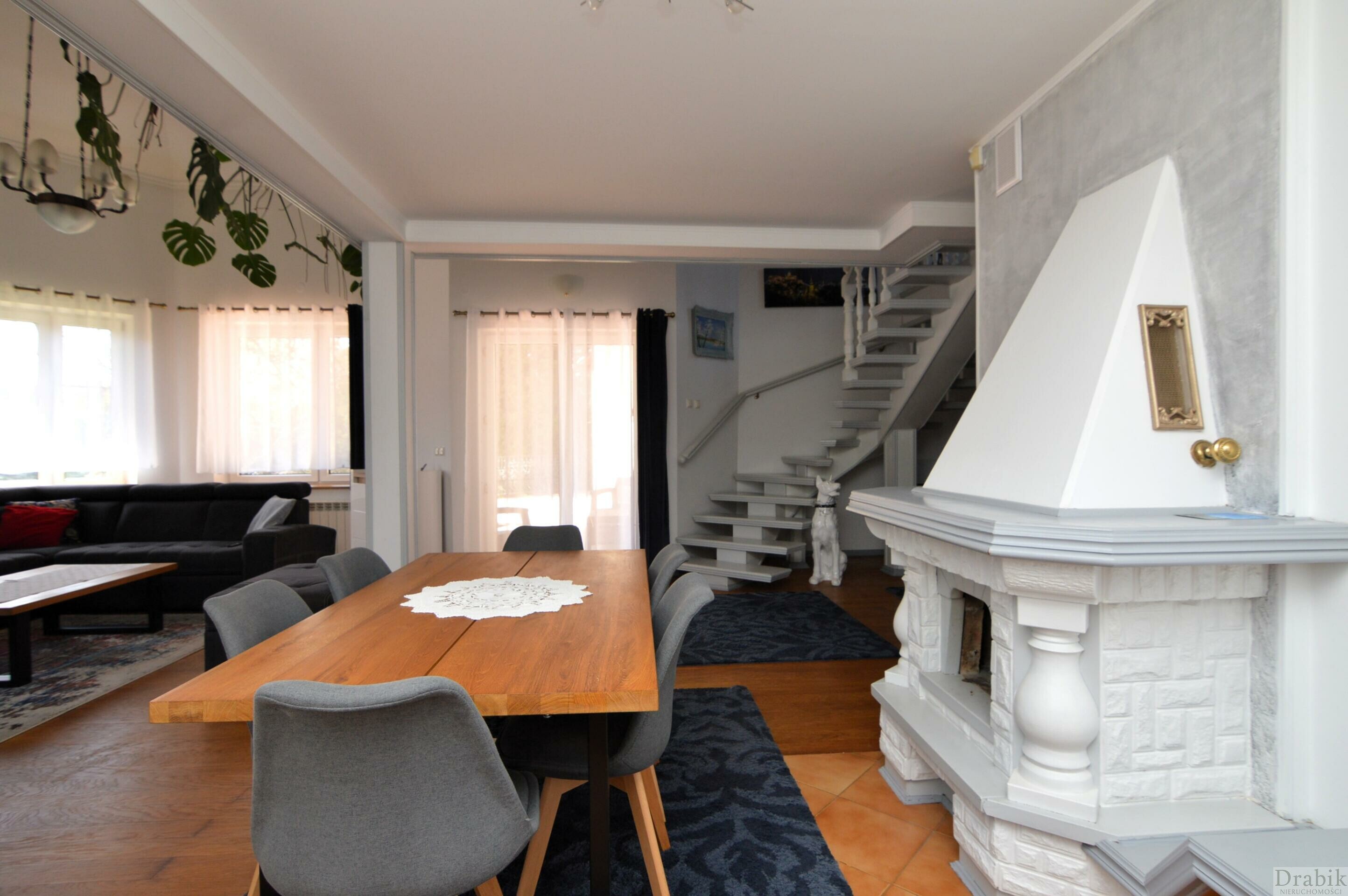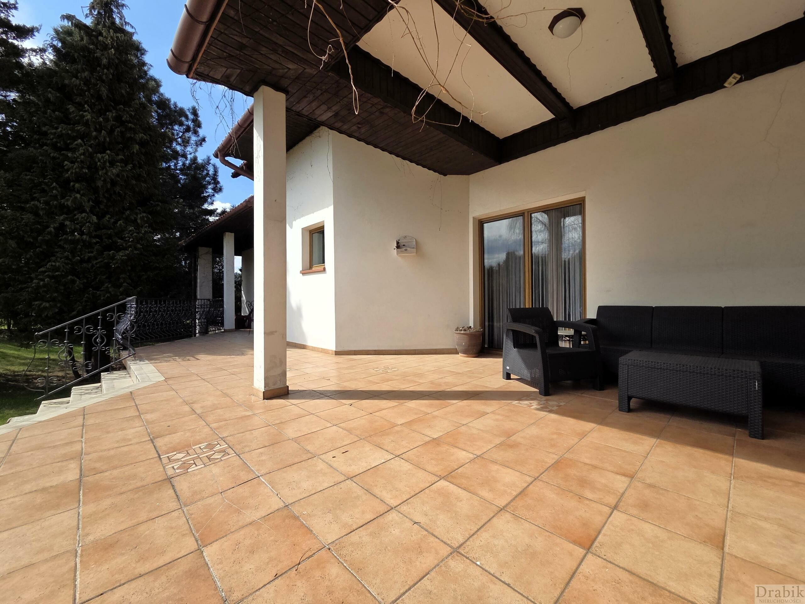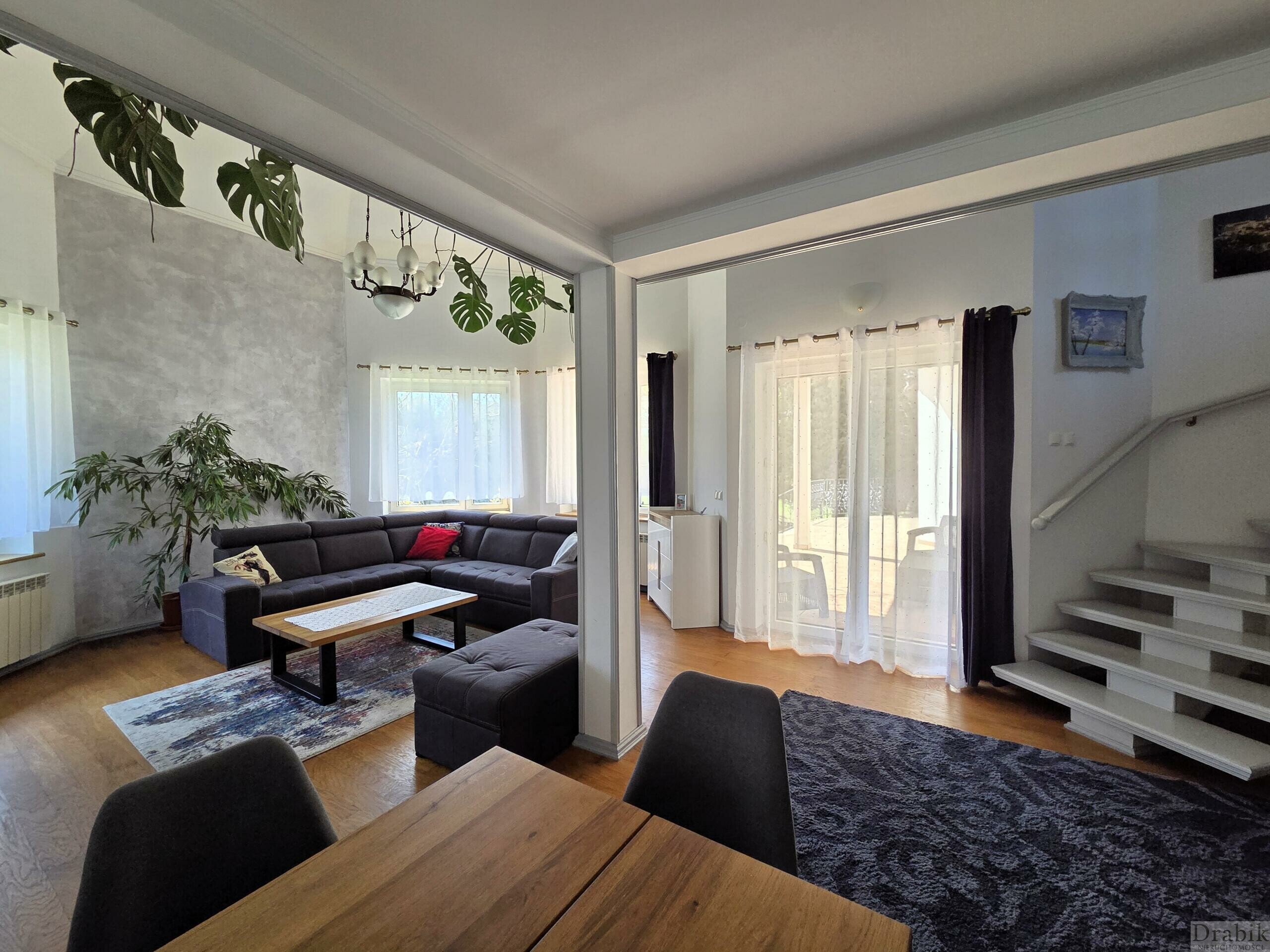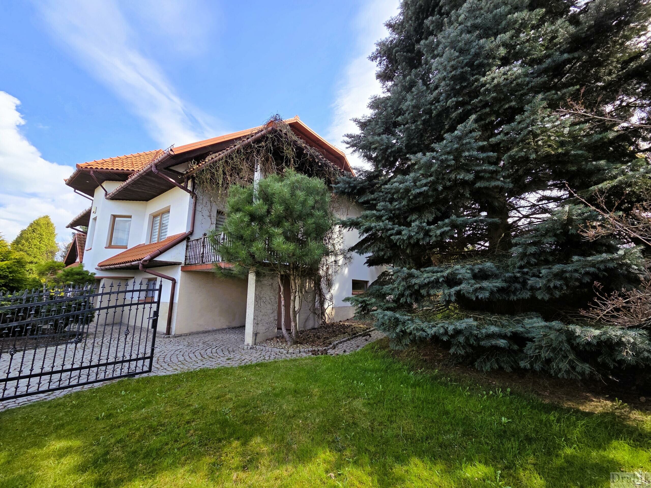 Dom otoczony jest okazałym ogrodem. Znajdują się tam wysokie ok. 30 letnie drzewa a także mnóstwo roślinności w niższych partiach, rozmaite krzewy oraz kwiaty, które tworzą zieloną enklawę zapewniającą domownikom ciszę, latem cień a na co dzień prywatność oraz swobodę. Za domem znajduje się przestronny, częściowo zadaszony taras z zejściem do ogrodu, idealny na grilla lub odpoczynek w letnie długie wieczory.