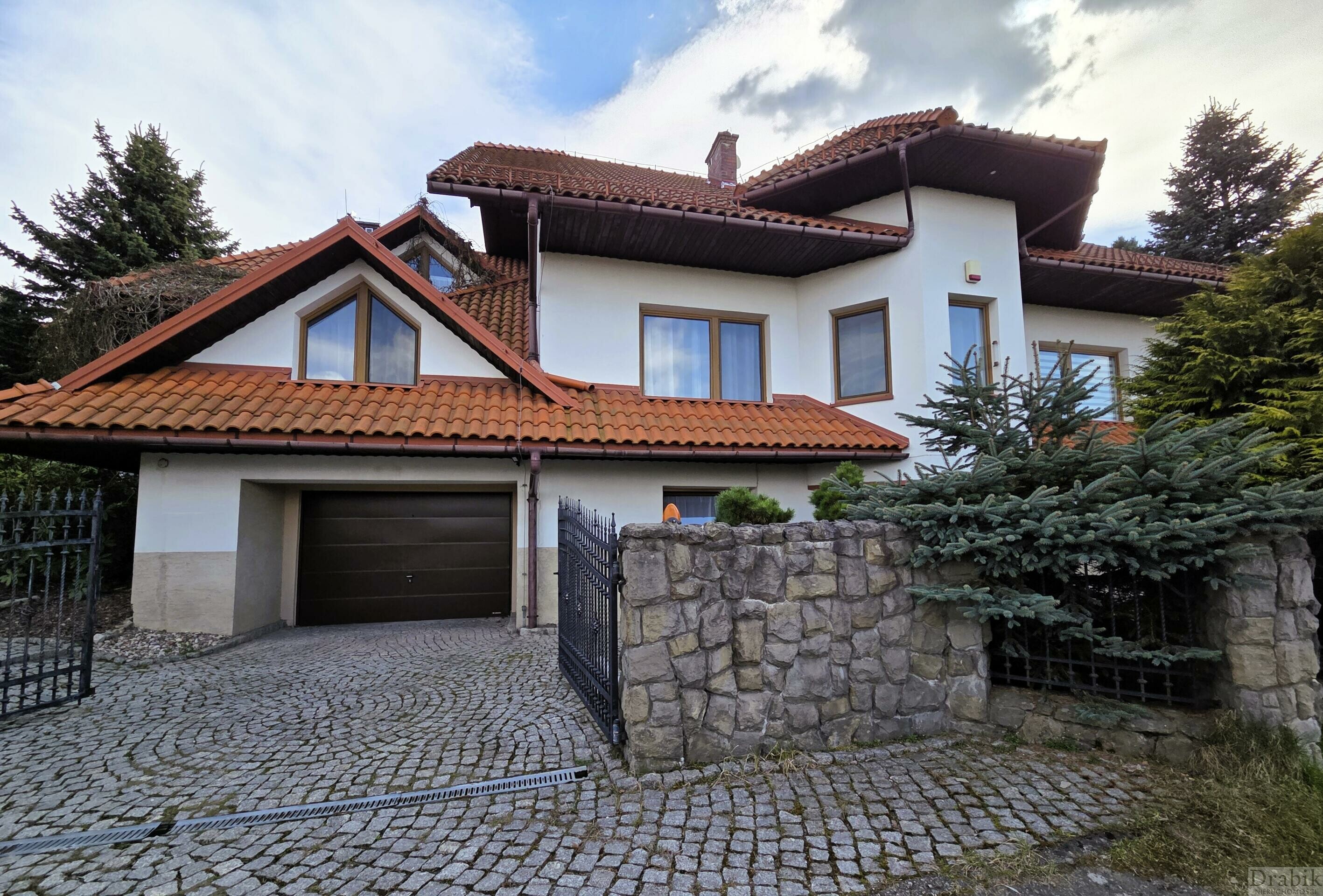 - przyziemia: dwa osobne zamykane garaże, 3 pomieszczenia gospodarcze, korytarz, kotłownia (ogrzewanie olejowe)